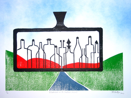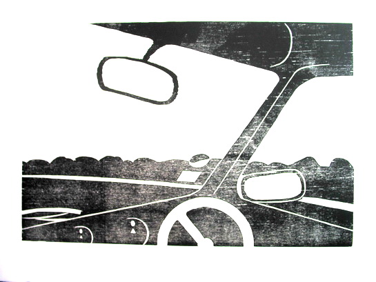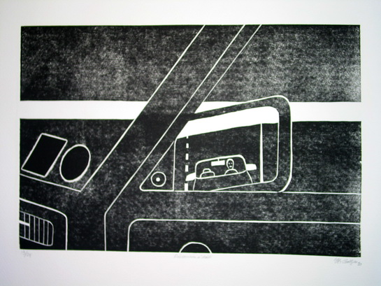 Surprisingly, the word retrovision does not exist in the English dictionary: it is taken from the French rétroviseur, which is the name of rear view mirrors. With mirrors we can see what cannot be seen obviously, thus they play a magical role for us, perhaps they give us a vision of our destiny ? So, I am working on my retrovision set of woodcuts, as what is to me a contemporary view of the mirror.
