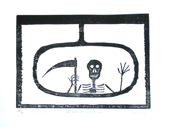 The mirror is an important element in western painting, and its most important role is to show what cannot be seen. The mirror extends the field of the canvas. Some time ago I, was working on woodcuts entitled Mirror. These woodcuts are not yet complete. They wait in my studio to be finished. They have raised a technical question for which I have not yet found an answer. When I shall find it, I will restart. It keeps me busy. There is also the question of the role of mirrors in our world. Mirrors play an important role in a world in which supervision has invaded our actions.